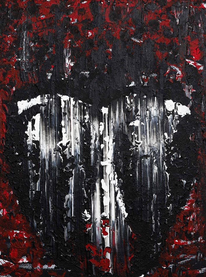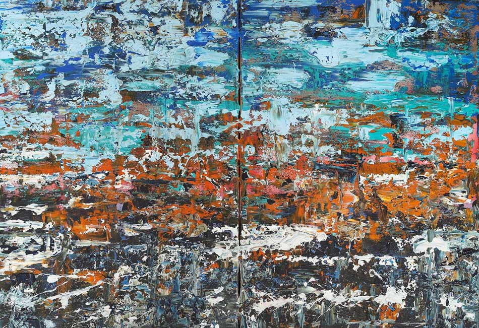 Acrylic and Oil Paint on white canvas with inner wood frame.