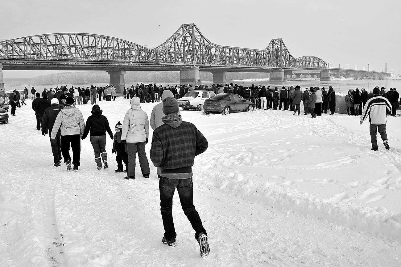 In Romania a lot of local traditions are going extinct with each passing year and it’s sad to see that happen. With the evolution of global markets and the globalization of culture, things are getting different very fast. As a commercial photographer, I spent a lot of time within private or public events. This project brings forward the local tradition in Fetesti, Romania, where on the 6th of January, people celebrate the baptism of Christ. This holiday gathers people in churches for rituals and traditions. This photo reportage was shot in 2011. After the religious ceremony is over, people take holy water home and keep it safe for the whole year, taking a sip every morning on an empty stomach for health. There are different traditions in every part of Romania, from north to south, from west to east. In the south east, where Fetesti, my hometown, is located, the priest blesses with holy water the owners, their horses and the carts for good luck and a new healthy and prosperous year. After that the custom is to throw a wooden cross in the freezing water. A few brave lads jump and swim in the attempt to get this cross. I can say it is quite an experience to look at, or better yet, swim for it. After that, the local gathering, organised a horse race. It got a little bit chaotic with the attempt of most of the participants to get over a dangerous hill with their carriages. Overall it was an awesome experience and I was lucky to be a part of it.