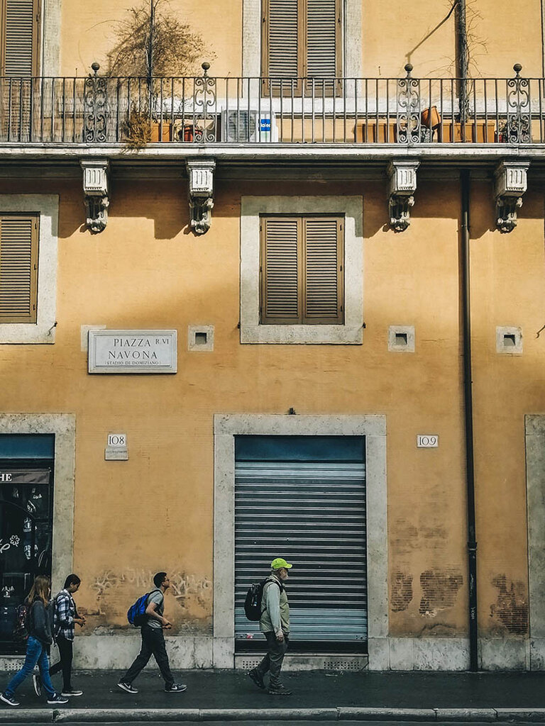 I find myself mesmerized by Rome’s architecture, the calmness of living and the pride of being well dressed. The women are gorgeous. They fill the streets with their smell, the sound of their shoes and complete the city landscape with their shapes. Erotic lips, silk like skin, their hair… Who thinks that not so long ago, maybe a few hours or minutes, they were moaning and getting lost in the warm sheets of a bed. I have a big appreciation for men also. They are fit, well dressed and look innocent and kind. They look that they can fall in love in a couple of minutes with all their heart. Gentle man …right? It has it’s meaning. Being gentle with a woman. This things are what makes Rome so beautiful until now, in my view. The sexuality of man and women seems to be very well defined. Leather boots and simple clothes, colorful bags and scooters. It’s beautiful.